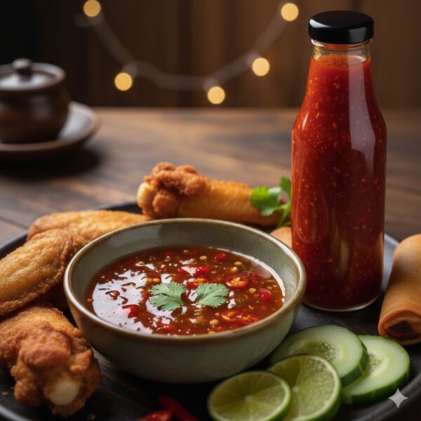 เราไม่ได้ทำแค่น้ำจิ้มไก่ แต่เราบรรจงเคี่ยวความหอมหวานและเปรี้ยวอมเผ็ดอย่างพิถีพิถันจากวัตถุดิบชั้นดี ลองนึกถึงภาพ: เนื้อไก่ทอดกรอบๆ, ไก่ย่างฉ่ำๆ หรือแม้แต่ทอดมันร้อนๆ ที่รอการสัมผัส… พอจุ่มลงในน้ำจิ้มไก่สีแดงใสสูตรนี้ รสชาติแรกที่มาคือความหวานนำอย่างนุ่มนวล ตามด้วยความเปรี้ยวจากน้ำส้มสายชูหมักอย่างดี ที่ช่วยตัดเลี่ยนและปลุกความสดชื่น จากนั้นจึงตามมาด้วยความเผ็ดบางๆ จากพริกที่ซ่อนตัวอยู่